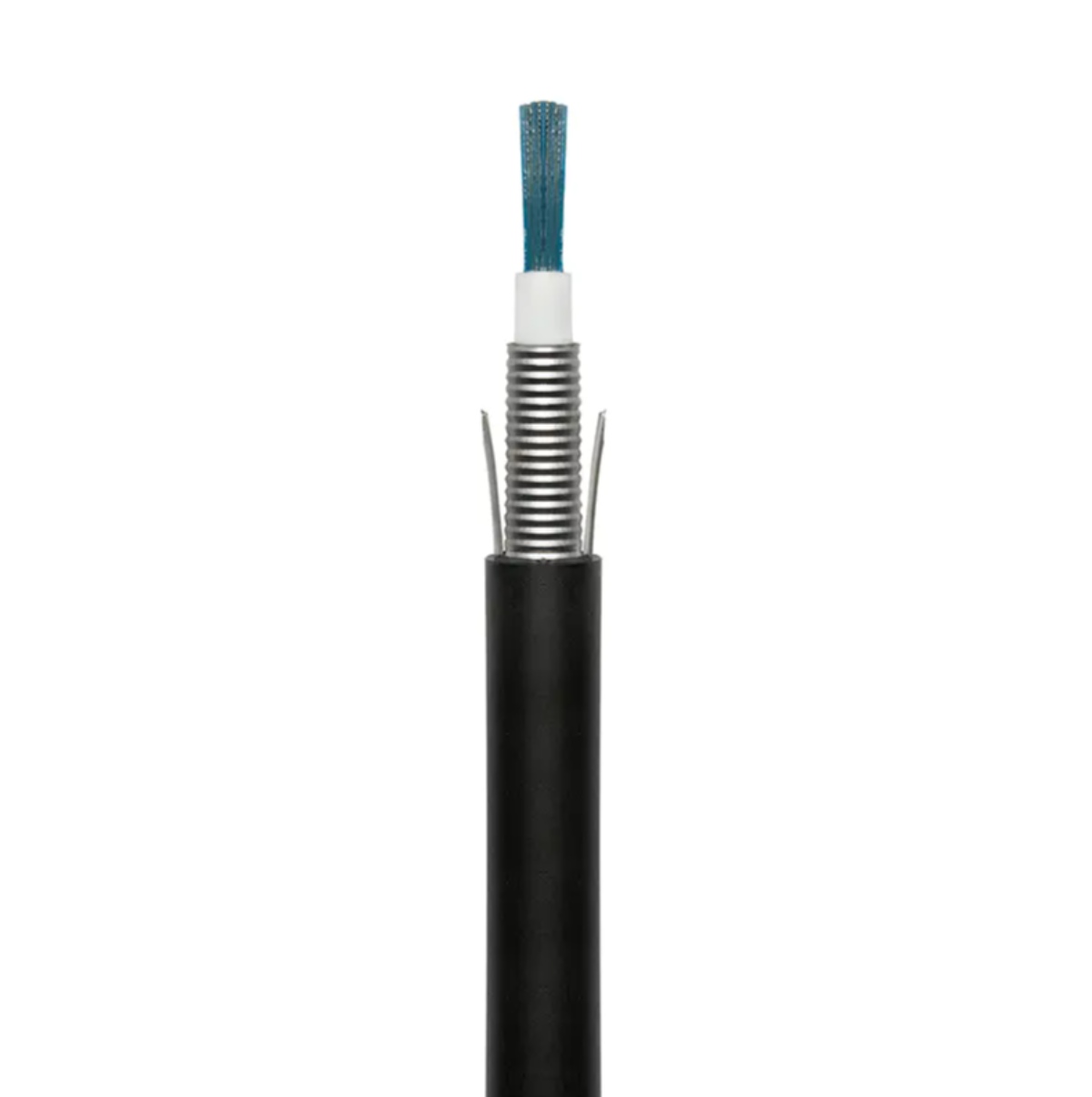 به قابلیت های ضد آب، مقاوم در برابر اشعه ماوراء بنفش و ضد جوندگان نیاز دارد. معمولا از a استفاده می کند ساختار رشته ای با لوله شل پر شده با ژل ضد آب